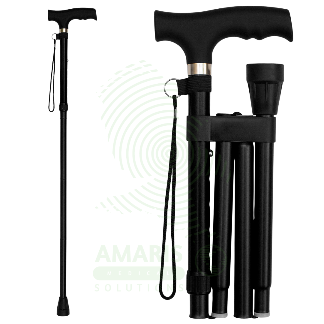 A Foldable Walking Stick combines a stabilizing four-point base with a multi-section shaft that folds for compact storage and portability. It is designed for individuals who need reliable stability for moderate balance or weight-bearing issues but also require a discreet, transportable aid for use in the community. Key safety features include secure segment locking mechanisms and a quad base that must be placed flat. It is ideal for travel, occasional use, and active seniors, but requires diligent checking of all locks before each use to prevent collapse.