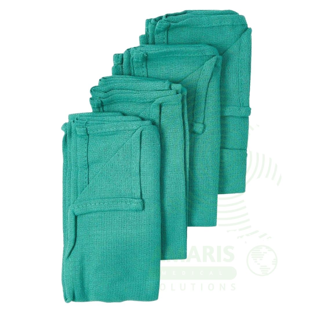 A Green Towel is a sterile, absorbent surgical towel used in operating rooms and procedure areas for draping, fluid absorption, and creating sterile fields. Made from high-absorbency cotton or cotton-blend fabric, the green color reduces glare under operating lights and provides visual contrast against blood and tissue. Essential for establishing sterile fields, protecting instruments, and managing fluids during surgical procedures, it is a fundamental component of aseptic technique in surgery, emergency care, and other invasive procedures.
