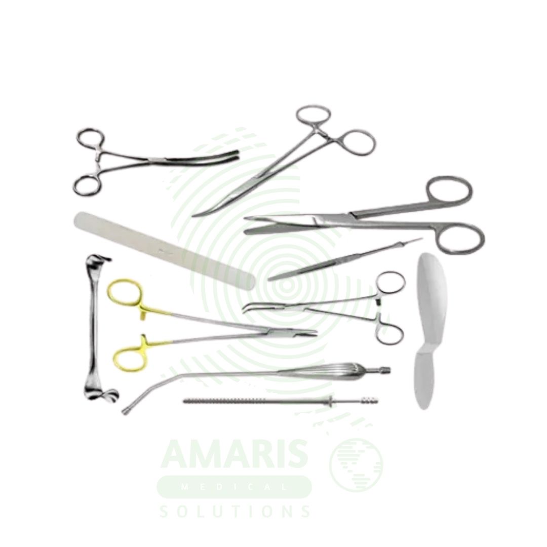 A Laparotomy Set is a sterile instrument tray containing comprehensive instruments for abdominal surgical procedures requiring laparotomy. The set includes instruments for abdominal incision, exposure, dissection, hemostasis, and closure, supporting a wide range of intra-abdominal surgeries including exploration, bowel resection, biliary procedures, and tumor removal. Essential for general surgery, trauma surgery, and oncologic surgery operating rooms, it ensures that all necessary instruments are sterile, organized, and immediately available for safe and effective abdominal surgery.