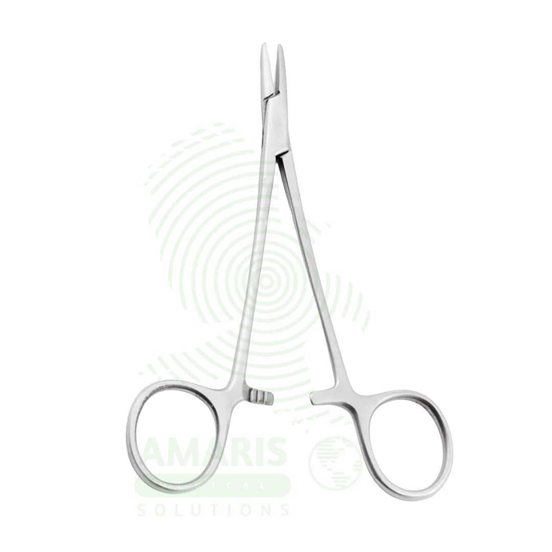 Jaw Design: Serrated jaws for secure needle grip; cross-hatched pattern prevents needle rotation.