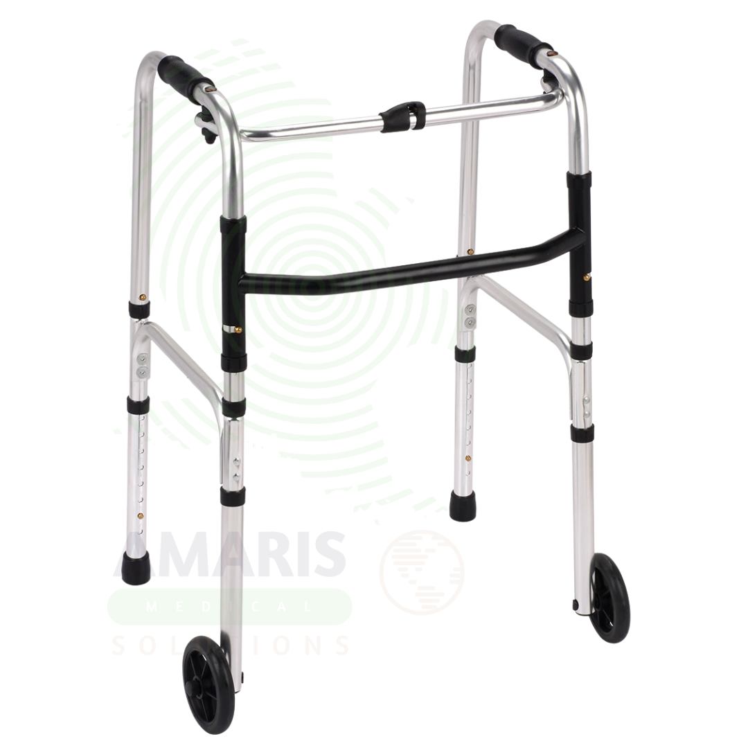 How it helps: For the physical therapist and geriatric specialist, the wheeled walking frame transforms walking from a precarious balancing act into a stable, supported activity—the wheels maintain continuous contact with the ground, eliminating the lifting and placing required with standard frames and providing constant stability throughout the gait cycle. For the individual whose balance is compromised by age, neurological condition, or generalized weakness, a wheeled frame means they can walk with confidence, knowing that support is always there beneath their hands.